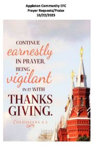 Prayer Requests & Praises Bulletin Insert 10-22-23 Leave a Comment / By ACEFCOffice / October 21, 2023